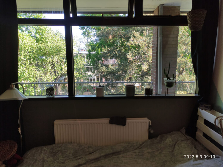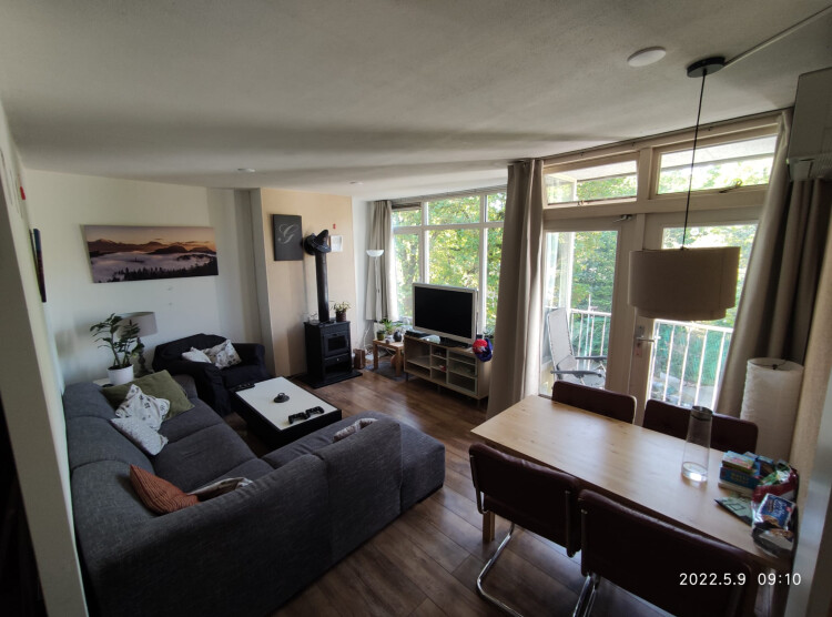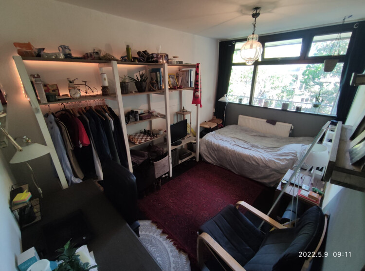 We now live here with two Dutch male students from Wageningen University, aged 24 and 25. The available room is 16 square meters. The living room, bathroom, kitchen, toilet, a large storage room and spacious balcony are shared with the three of us. All together the apartment is 73 square meters. In terms of utilities, the apartment is complete with a washing machine, dryer, dishwasher, kitchen with full size fridge and oven.